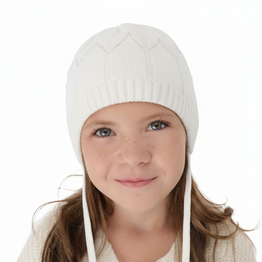Pige efterår/forår hue, hvid, med bindebånd, Mercja