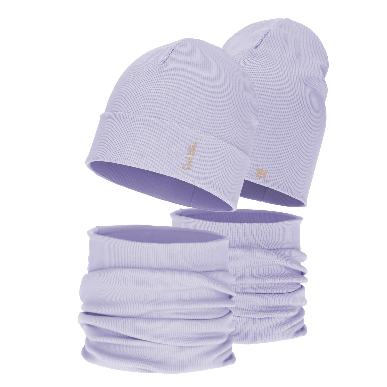 Pige efterår/forår sæt: hue og halsvarmer, bomuldsmateriale, lilla, Carina