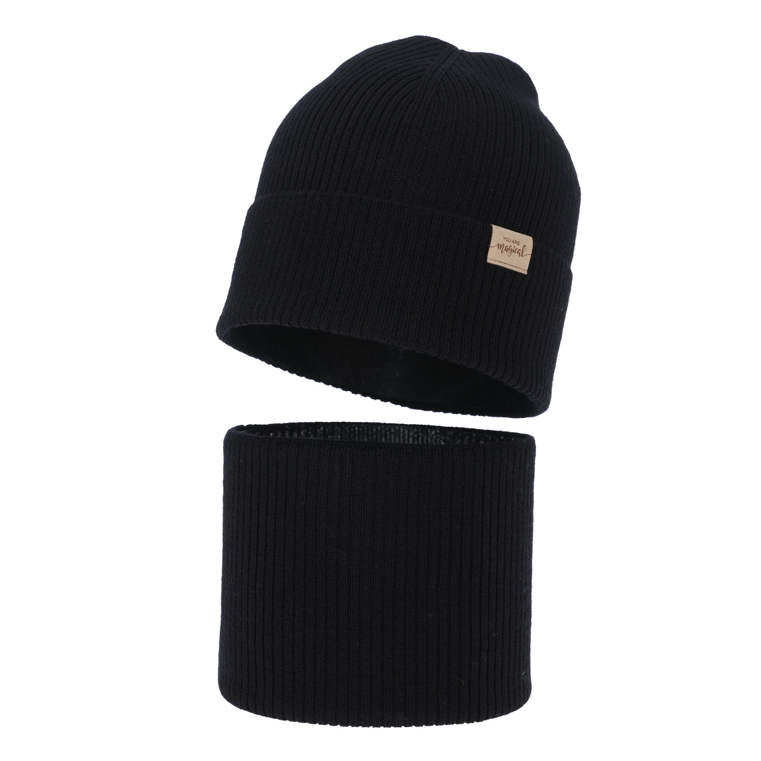 Det smukke ribstrik-mønster giver ikke kun et elegant udseende, men sikrer også optimal elasticitet og tilpasning. Huen tilpasser sig naturligt hovedets form, mens halsvarmeren beskytter halsen effektivt mod kølig vind. Den diskrete patch tilføjer et raffineret touch til det klassiske design. Dette pige sæt er ideelt til overgangsperioder, hvor vejret kan være uforudsigeligt.