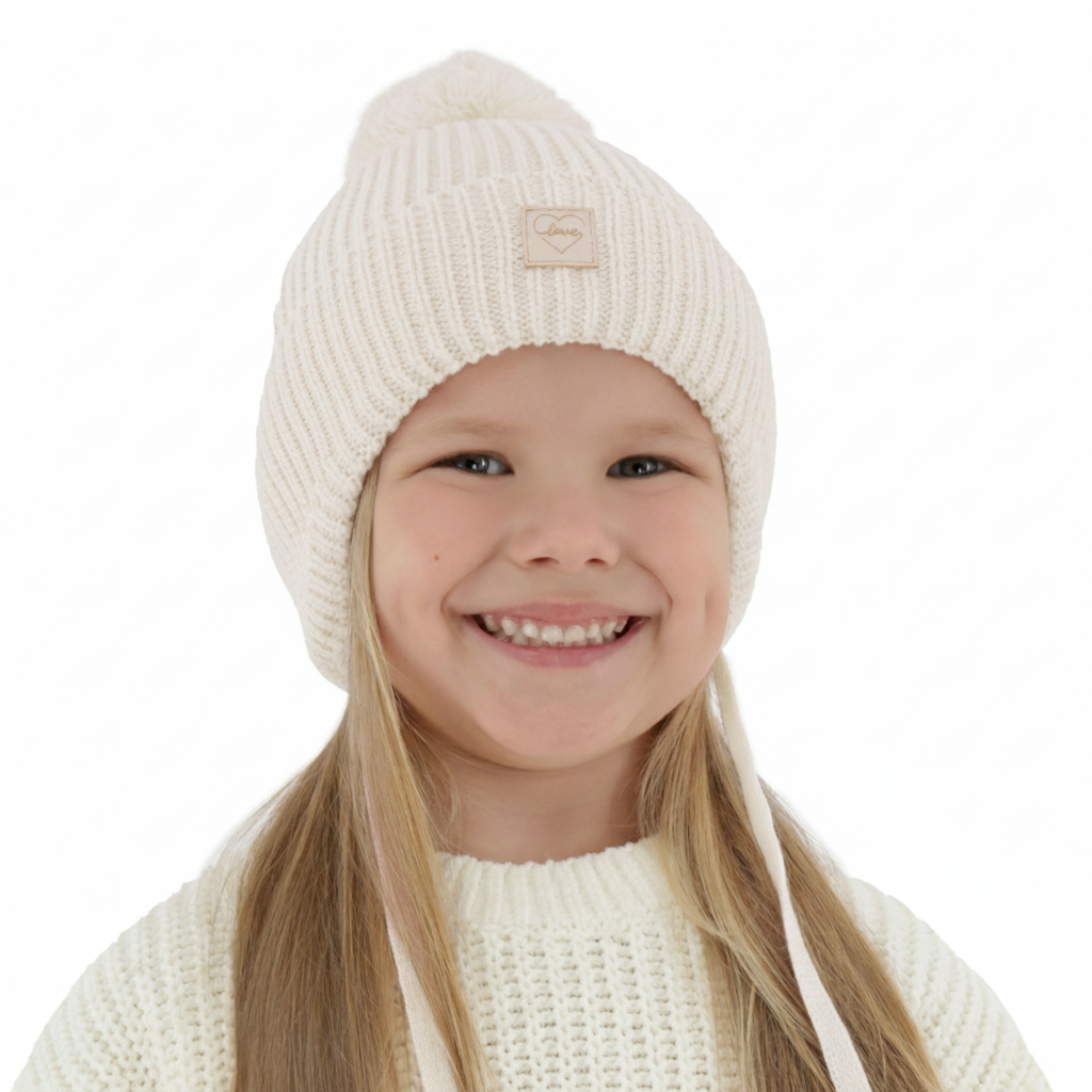 Pige vinterhue, cremefarvet, med merinould, foret med fleece, med bindebånd, Hakkari