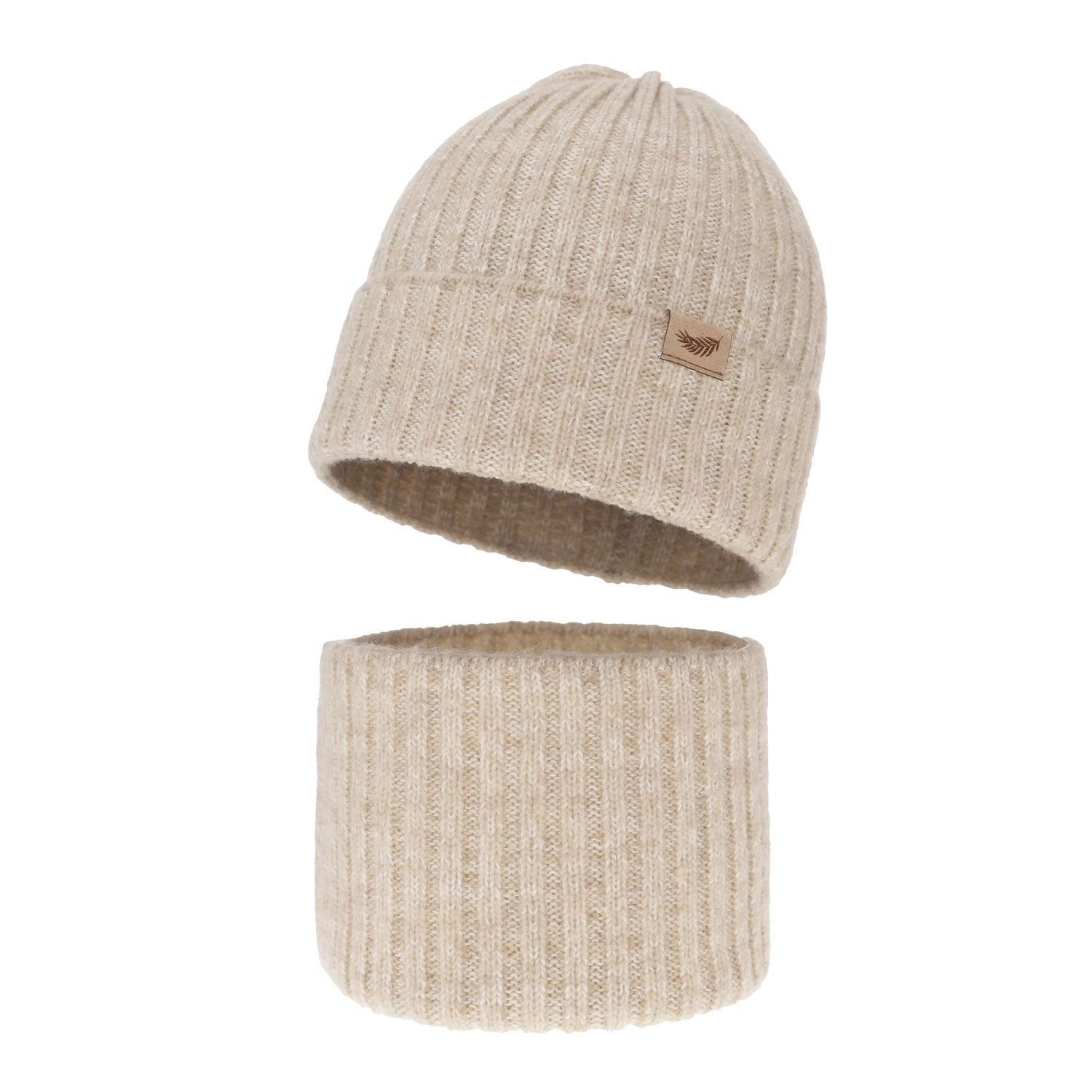 Pige vintersæt: hue og halsvarmer, beige, med merinould, Karmina